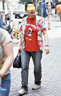 シャツの着こなしが、下に着たアイテムが見えるように重ね着スタイルのもの。色や素材、柄の有無、袖丈などは問わない。