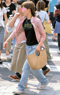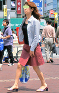 いちばん上にシャツを着用している女性すべて。シャツの定義は、衿があり、前後の身頃と前立て、袖で構成されてトップスで、前はボタンで全開するもの。ただし、色や柄、素材、袖の長さ、丈は問わない。