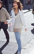 前身ごろにタテに2列、4個以上ボタンが付いているアウター。色や柄、素材、丈は問わない。もちろんトレンチコートも含む。