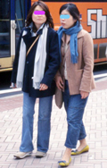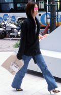 いわゆるブルーのデニム素材のジーンズ。基本的には5ポケットとするが、若干デザインが入ったものでもアウターなどで判別しにくい場合は含む。丈は問わない。