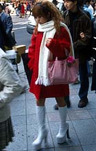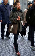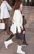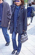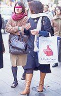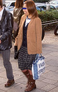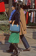 “お嬢持ち”とは、持ち手を腕に通して持つスタイルのこと。色やデザインは問わない。
