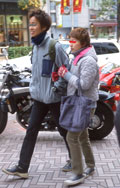 “お嬢持ち”とは、持ち手を腕に通して持つスタイルのこと。色やデザインは問わない。