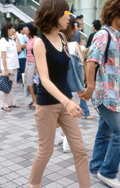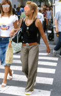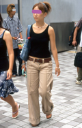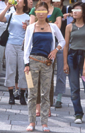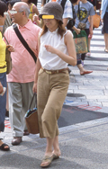 トップスかボトムスのいずれかが、ベージュ〜モスグリーン、カーキ色がベースとなっているアイテムを着用する女性のすべて。ワンピースも含む。帽子やバッグ、靴だけの場合は除く。素材は問わない。