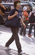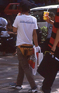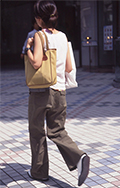 大きめのウエストポーチで、よりワーク感の強目なスタイル。