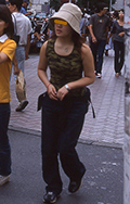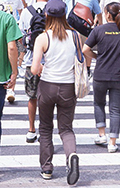 ワークパンツに華奢見えするタンクトップを合わせて、女性らしい...