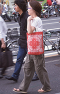 夏らしくパキッとしたビビッドな赤とモノクロのトートは、アース...