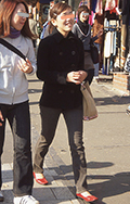 キレイめアイテムの「トンガリ靴」を、「ぺたんこ」で“カジュアル・ミックス”に。テイストの異なるアイテムをあえて組合わせるのが今のトレンド!
