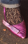 つま先が尖っていて、ヒールがほとんどないもの。色やその他の部位のデザイン、素材は問わない。
