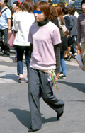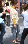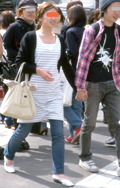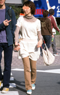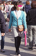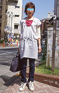 ワンピースも可。色や素材、柄の有無は問わない。その上にジャケットやパーカー、ジップアップブルゾンなど、前開きのアウターを重ねている場合も含む。