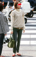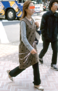 レイヤードの上に重ねたトップスの襟刳りがVゾーンを形成しているもの。