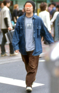 いちばん上に前あきシャツを着用しているスタイルすべて。前のボタンの開閉やシャツの色や柄、素材などは問わない。