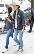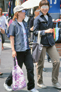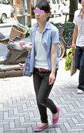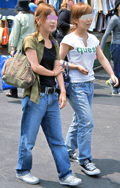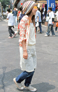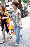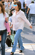 いちばん上にシャツを着用している女性すべて。シャツの定義は、衿があり、前後の身頃と前立て、袖で構成されてトップスで、前はボタンで全開するもの。ただし、色や柄、素材、袖の長さ、丈は問わない。