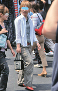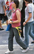 いちばん上にシャツを着用している女性すべて。シャツの定義は、衿があり、前後の身頃と前立て、袖で構成されてトップスで、前はボタンで全開するもの。ただし、色や柄、素材、袖の長さ、丈は問わない。