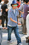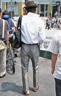 シャツの着こなしが、下に着たアイテムが見えるように重ね着スタイルのもの。色や素材、柄の有無、袖丈などは問わない。
