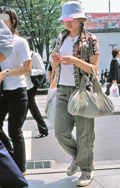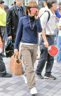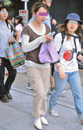 いちばん上にシャツを着用している女性すべて。シャツの定義は、衿があり、前後の身頃と前立て、袖で構成されてトップスで、前はボタンで全開するもの。ただし、色や柄、素材、袖の長さ、丈は問わない。