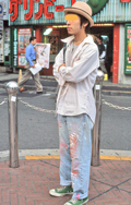 シャツの着こなしが、下に着たアイテムが見えるように重ね着スタイルのもの。色や素材、柄の有無、袖丈などは問わない。