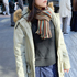 このブーツはくるぶしの金属がかわいく、使用感があるのが好き。こなれ感があって「ずっと使ってますよ?」って顔で履いています。冬は週1〜2回履いていていますが、夏も履いていきたいです。自我が強くて、平均30分〜1時間、その日のコーデを組むのに時間がかかるんです。好きなアイテムを集めて組むのが普通。今日の組み方は、まずスカートとブーツを合わせたいので決定。寒いから黒のインナーを入れる。唯一丈の長いジャケットとチョイスした感じです。友人が「昔の人は寒くてもダウンは着ない」と言う話を聞き、昔の人には負けられないということで、ダウンは着ないという強い意志を持っています。とはいっても首を温めることは意識しています。最後に、赤サングラス、多くの色を拾えるマフラー、マフラーの中の緑を使って迷彩のバッグ、という感じです。