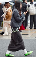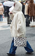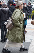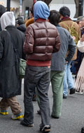 いちばん上に着用した服=アウターのうち、ダウンやフェザー、綿などの飲茶レーションによる膨らみが感じられるものすべて。デザインや丈、表面の素材や色は問わない。