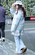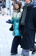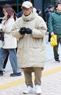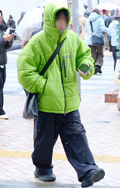 いちばん上に着用した服=アウターのうち、ダウンやフェザー、綿などの飲茶レーションによる膨らみが感じられるものすべて。デザインや丈、表面の素材や色は問わない。