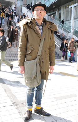 黄色いソックスを見せたいと思ってロールアップにしました。流行っているし、この靴でロールアップしないとお兄系っぽくなっちゃうので。