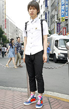 20代前半の男の子には、パンツをハイカットスニーカーにインす...