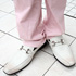 パンツはユニクロのもの。ストレッチ素材のパンツを探していて、気に入ったので買いました。ピンクは好きです。ボトムが派手なので、トップスは控えめにコーディネートするようにしています。