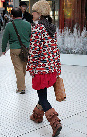 帽子の着用率も高い。ファーやニット、ボアなど暖かみを感じさせ...