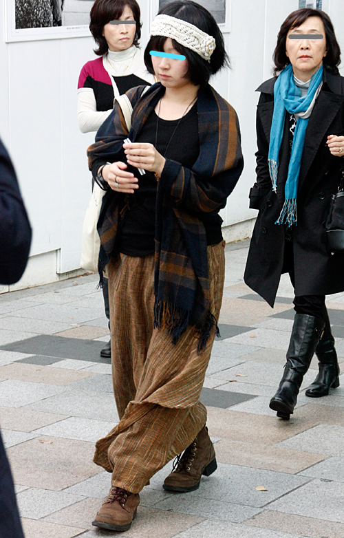首の周辺に何らかのものを巻いているスタイル。素材や色、柄は問わない。