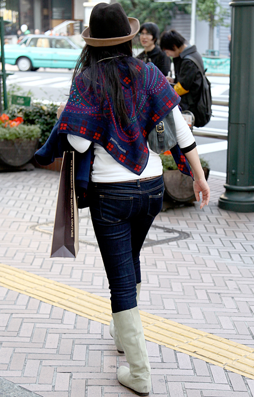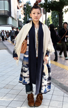 巻きもの類を、肩を覆うように羽織って着用するスタイルすべて。素材や色、柄は問わない。