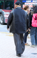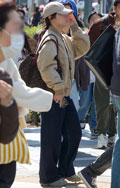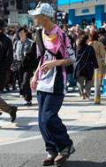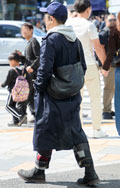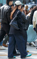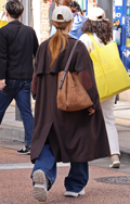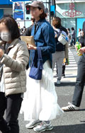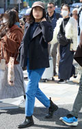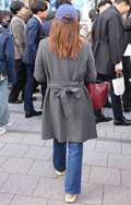 ロングヘア+キャップの女性も散見された。黒ではなくネイビーが...