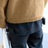 レイヤードコーデは普段やっていて、今日はこのニットをメインに演出したかったからそれに合わせてアイテムを選びました。まだニット単独だとさむいなと思って。黒にしたのはニットの模様に黒が入っていて、統一させたかったからです。このシャツは最近好んで着ています。もう少しあったかくなったら、レイヤードではなく上に着て見せたいです。