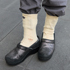 このパンツは下に行くにつれて細身になっていく形がかわいくて、いただきました。靴下の解れた様子を見せたかったのでソックスインをしています。