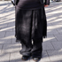 A タイトめなシルエットが好きで中のパーカーが出る丈感でジャケットを選びました。細身×オーバーが好きです。体格的に短丈×タイトは合わないです。低身長さが出ないシルエット作りを意識しています。レイヤード感をさらに出すために巻きスカートを使いました。黒アイテムが多いけど、素材&シルエットアイテムを変えてごちゃごちゃさせるのが好き。