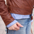 レザージャケットを着るとバイカーファッション的になりやすいのでもう少しきれいに着たいと思ってストライプシャツをレイヤードしました。女性らしさを出したくてヒールのポインテッドトゥを履きました。最近細みシルエットの気分なので、全体的にジャストサイズにまとめました。色味は春感を出したくて茶色と青、シルバーで爽やかな印象になるようにしました。