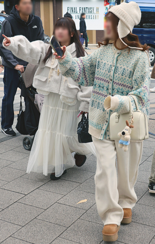 女性が着用するアウターのうち、全体が3分の2以上が白もしくはベージュ系のカラーのものすべて。素材やデザインは問わない。