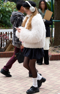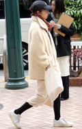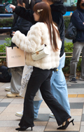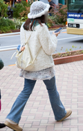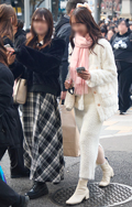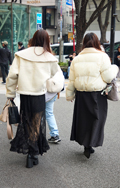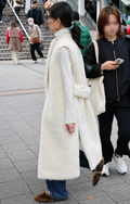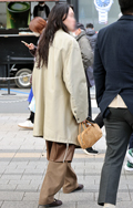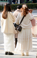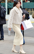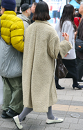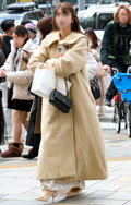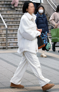 女性が着用するアウターのうち、全体が3分の2以上が白もしくはベージュ系のカラーのものすべて。素材やデザインは問わない。
