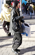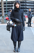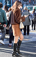 オールブラックコーデもデニムやニット、スエードのバッグやブー...