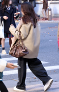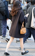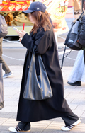 バッグの肘かけスタイルと肩に羽織ったコートがエレガント。バッ...