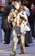 ボリューミーなファーコートは肘掛けが自然。00年代っぽいメタ...
