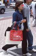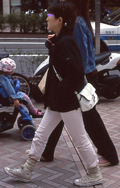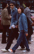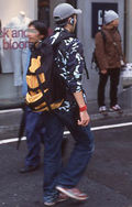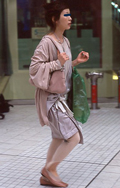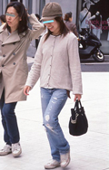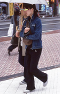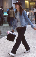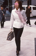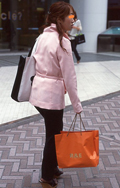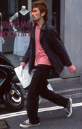 明度、彩度、共に広くピンク系のアイテムを身に付けている人すべて。柄のあるアイテムの場合、メインの色味がピンク系であれば含む。素材は問わない。