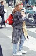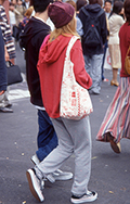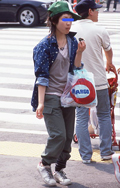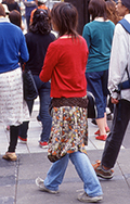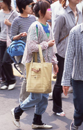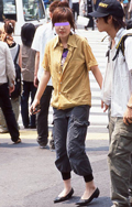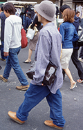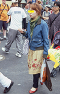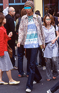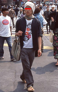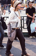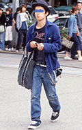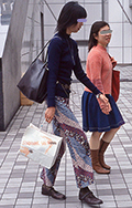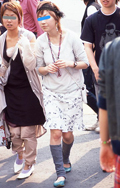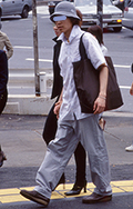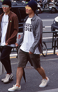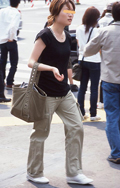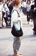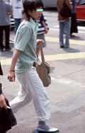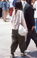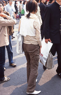 暗めのベージュ〜カーキ、フォーレストグリーンまでの色合いのパンツを着用する人すべて。丈やシルエットなどのパンツのデザインや素材などは問わない。