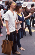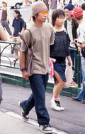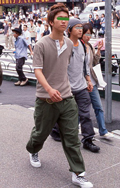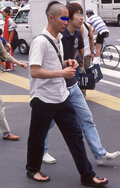 つま先部分がビーチサンダルや下駄の鼻緒のようなデザインになっているサンダル。アレンジとして、親指と他の4本との間にストラップが入っているものはすべて含む。色や素材は問わない。