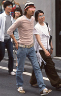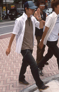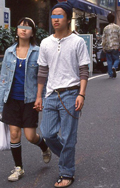 つま先部分がビーチサンダルや下駄の鼻緒のようなデザインになっているサンダル。アレンジとして、親指と他の4本との間にストラップが入っているものはすべて含む。色や素材は問わない。