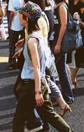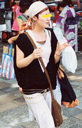 トップス、ボトムス、靴、バッグ、ベルト、眼鏡などの全面になんらかの柄が施されているもの。ワンポイントや余白をとったデザインのものは除く。素材や色は問わない。
