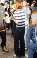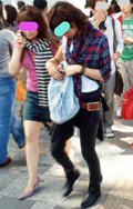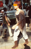 トップスの上からちょっと掛けて着る着方をしている女性すべて。掛け方は問わず、カーディガンやジャケットなども前を開けて着用していたり、ボタンをひとつだけしか留めなかったりなど、ドレープ感が出るような着方(=羽織るような着方)をしていれば含む。カーディガンやシャツ、ジャケット、ストール、ボレロ、ポンチョなど、アイテムは問わない。