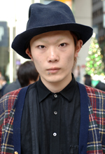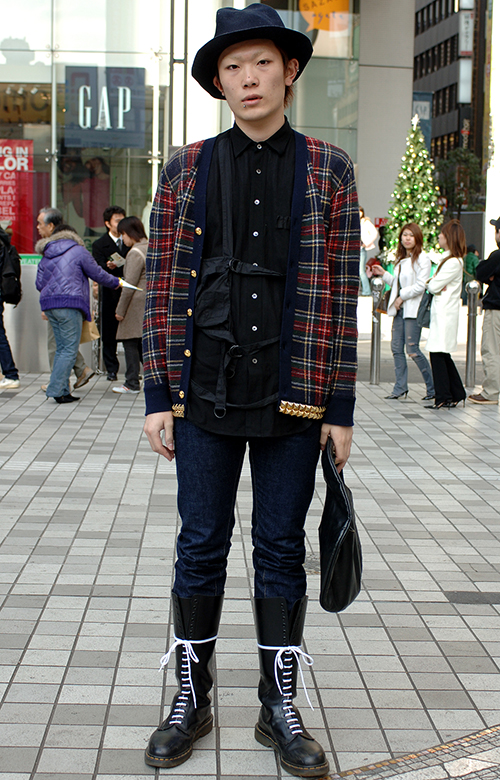 このカーディガンはラブレスで買ったエデユケーションフロムヤングマシーンというブランドのものです。チェックでパンクっぽい感じが好きなので一目惚れしました。普段からUKの古いパンクを意識して服を選ぶことが多いですね。他にもジュンヤワタナベとルイスレザーがコラボレーションしたチェックのライダースブルゾンを持っています。毎日のコーディネートでどこかにチェックを持ってくるようにしています。