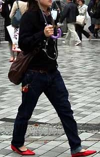 今月に入り赤い靴をポイントにした着こなしが急増。エナメルパン...