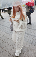 雨にも関わらず白ボトムス特にロングスカートが散見された。こち...