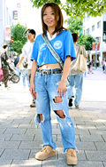 デニム素材のパンツのうち、カーゴパンツ風のポケットやボンデージパンツ風のベルト等の装飾、あるいは過度なダメージ加工やブリーチ加工、プリント加工等によってベーシックな5ポケットパンツとは異なるデザインが加わったものすべて。色や柄は問わない。ハーフパンツ/ショーツも含む。