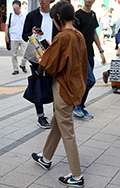 トップスをボトムスの中に入れている女性すべて。デザインや色、素材は問わない。ボトムスのデザインや色、素材も問わない。上にアウターを重ねている場合も、インしたウエスト部分が見えている場合は含む。ワンピースは含まない。